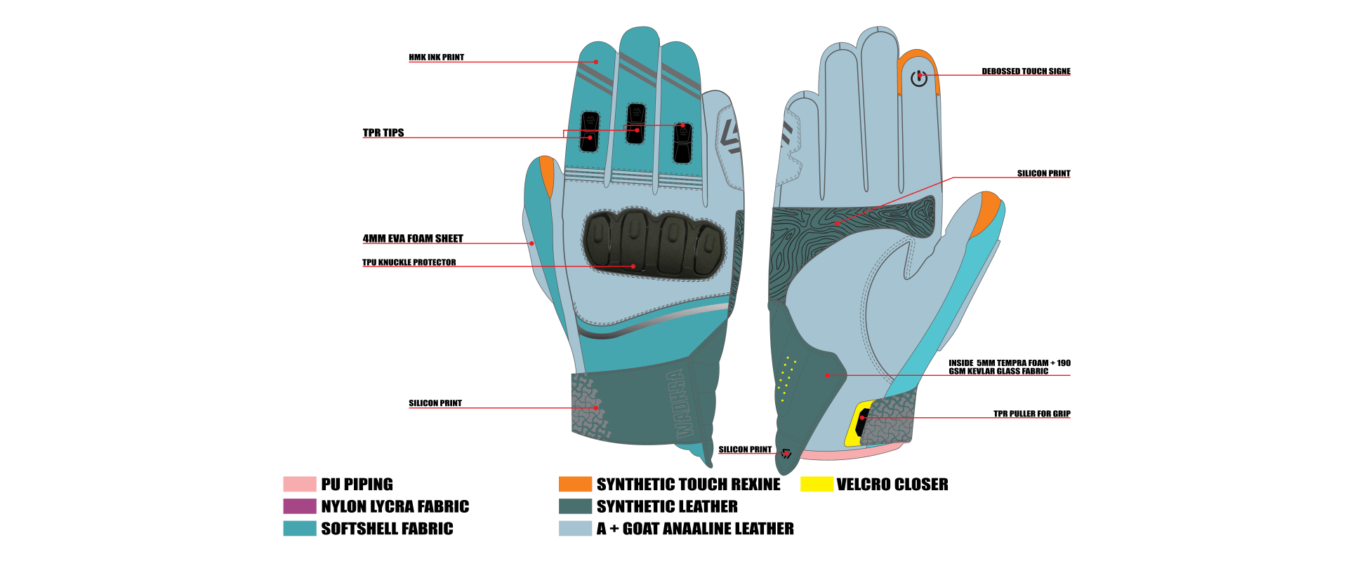 High-quality HMK ink print adds a touch of style and visual appeal to the gloves.